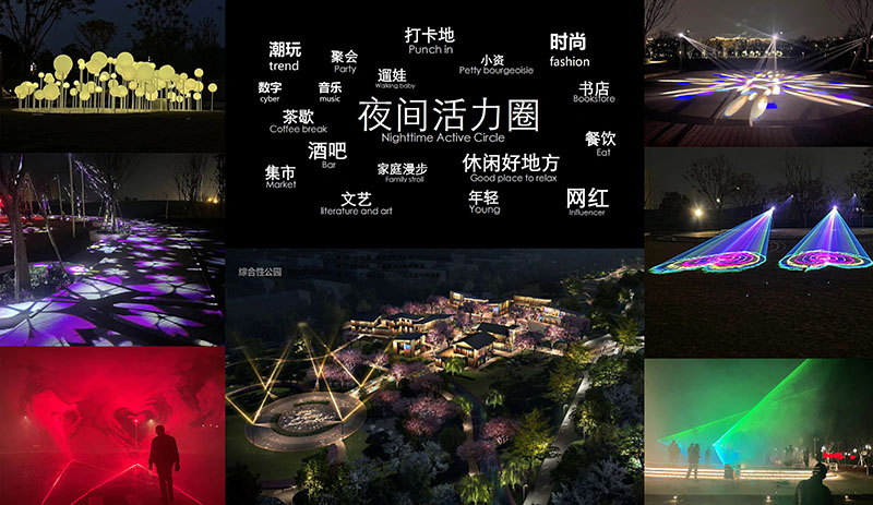 在方案設(shè)計過程中,我們首先從項目場地總體規(guī)劃的角度出發(fā),深入了解各地塊的區(qū)域功能、定位,使燈光系統(tǒng)盡可能考慮到所有地塊內(nèi)容,使其整體統(tǒng)一且獨具各自主題特色。我們特別注重于燈光環(huán)境對視覺生理的支持,用燈光創(chuàng)造可辨識的夜間環(huán)境;亮度、照度等量化指標的給出有堅實的理論基礎(chǔ),并與實際相符合。同時利用燈光對景觀結(jié)構(gòu)進行重組,使其成為感知環(huán)境特色的工具。整體布局上呈現(xiàn)多元、有活力的夜景形態(tài),適應(yīng)多種夜間活動的需要。